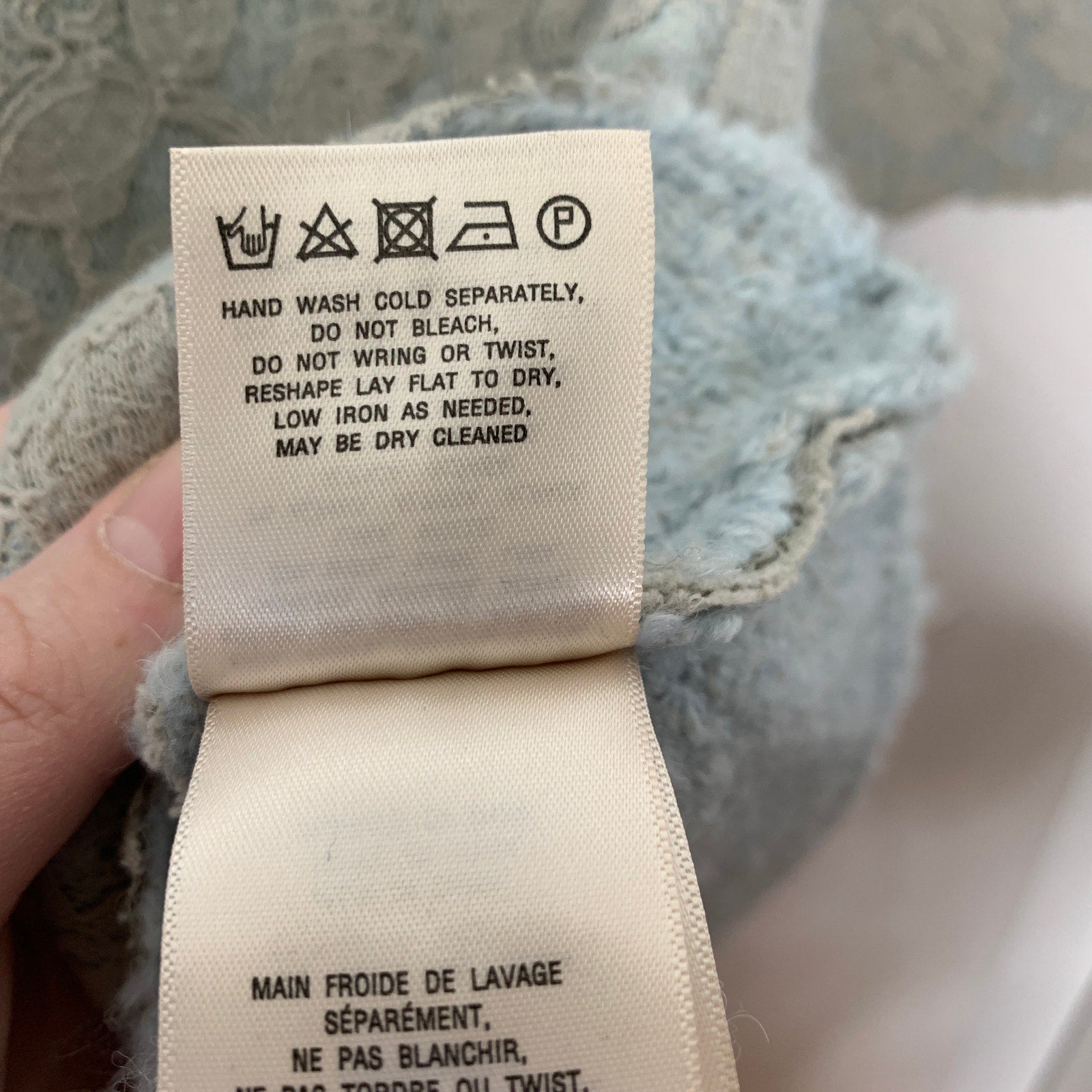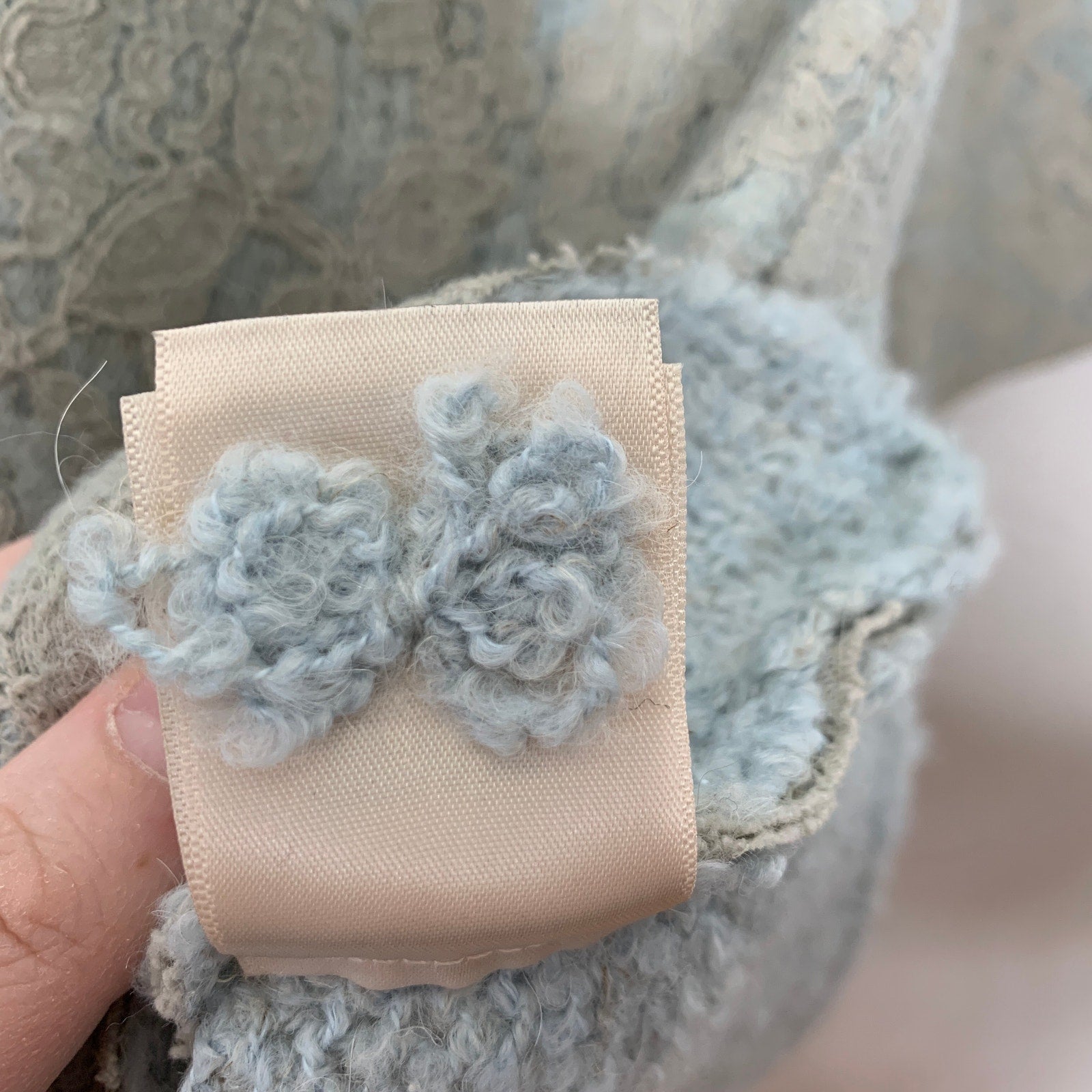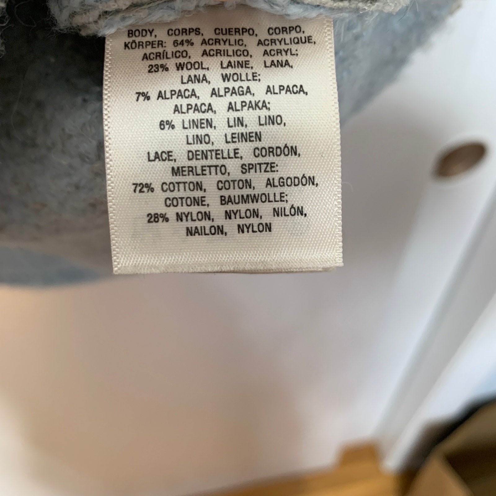 - Material: KNIT - 64% acrylic 23% wool 7% alpaca 6% linen; LACE - 72% cotton 28% nylon