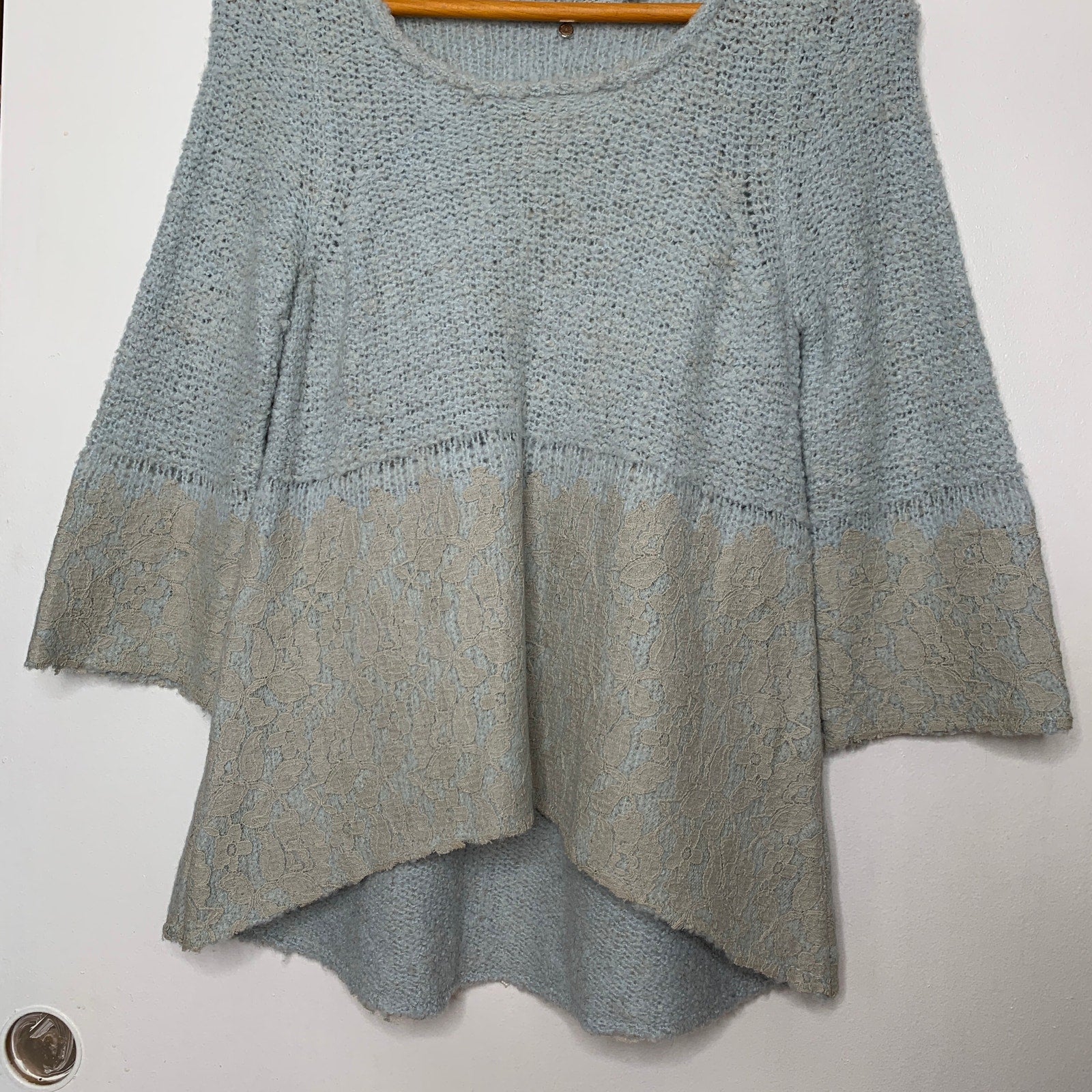 Anthropologie Knitted & Knotted chunky knit lace trim sweater SZ S