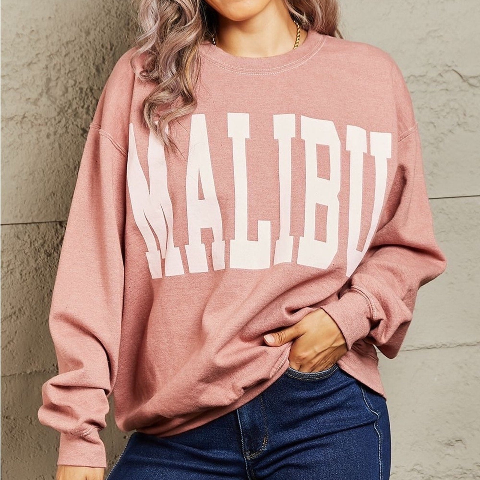 This sweatshirt boasts a premium garment-dyed finish that lends a unique, lived-in look. The oversized fit provides a relaxed, laid-back feel, perfect for lounging or pairing with your favorite denim for an effortlessly cool outfit. Emblazoned with a captivating "Malibu" graphic, this sweatshirt adds a touch of beachy vibes to your wardrobe.