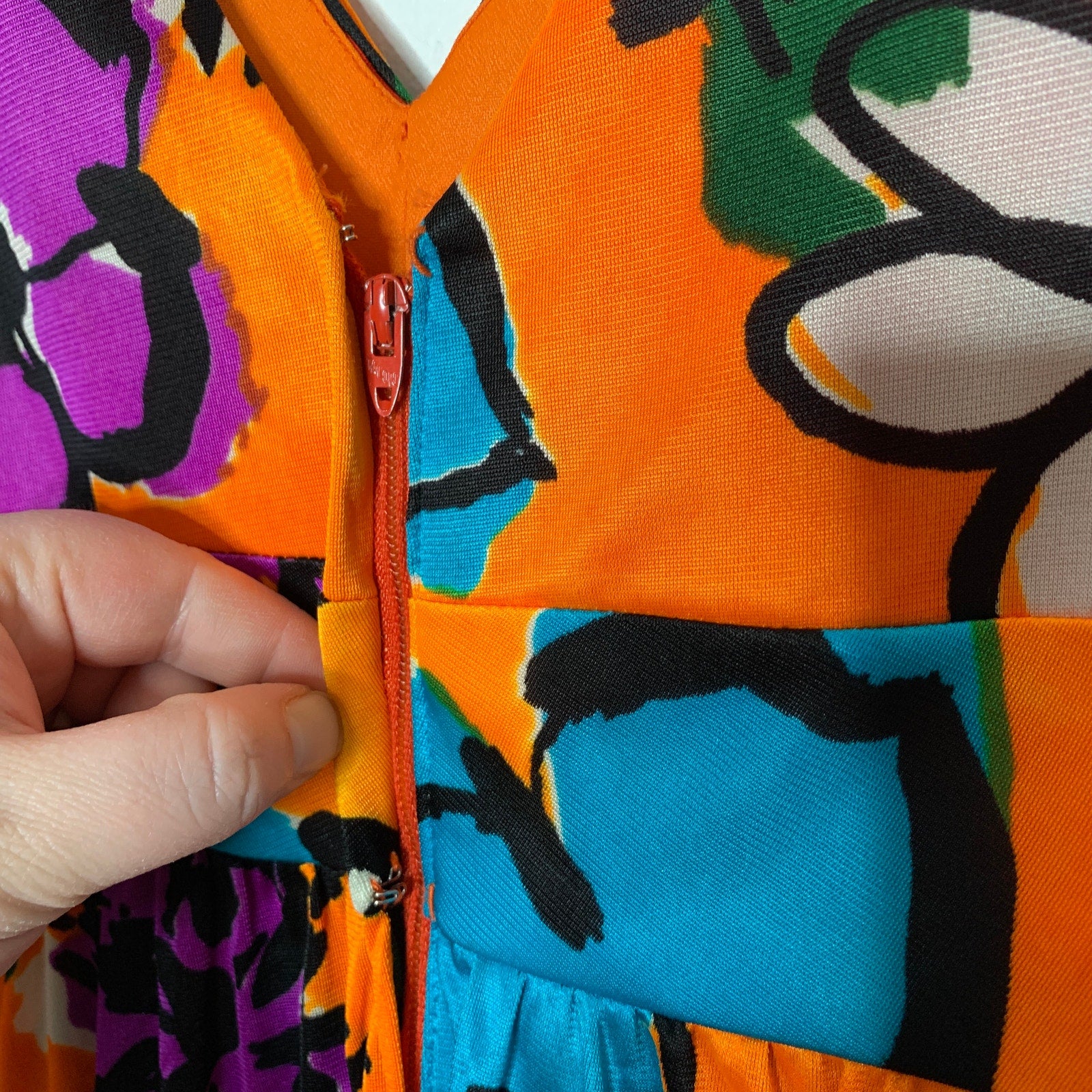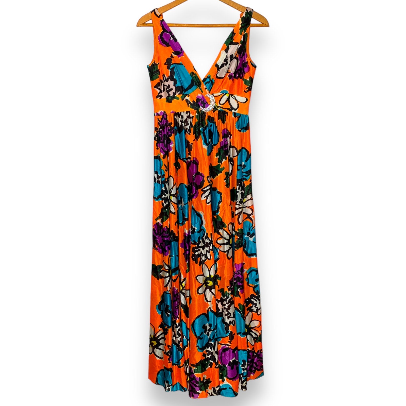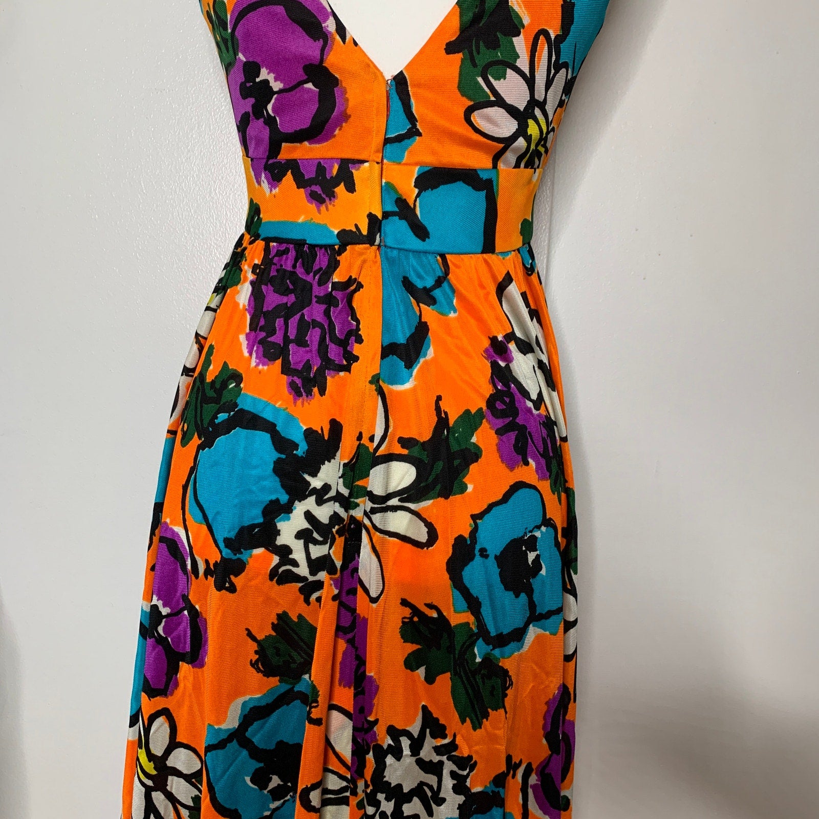 Vintage 60s Fred Perlberg hand screen printed floral maxi dress SZ S